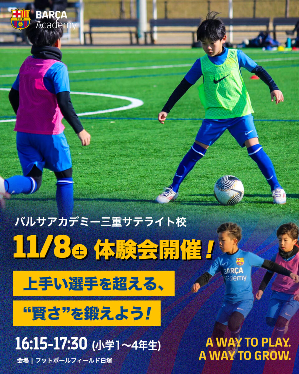 11月8日㈯、三重県津市フットボールフィールド白塚にて、バルサアカデミー三重サテライト校のトレーニング体験会を開催!👏