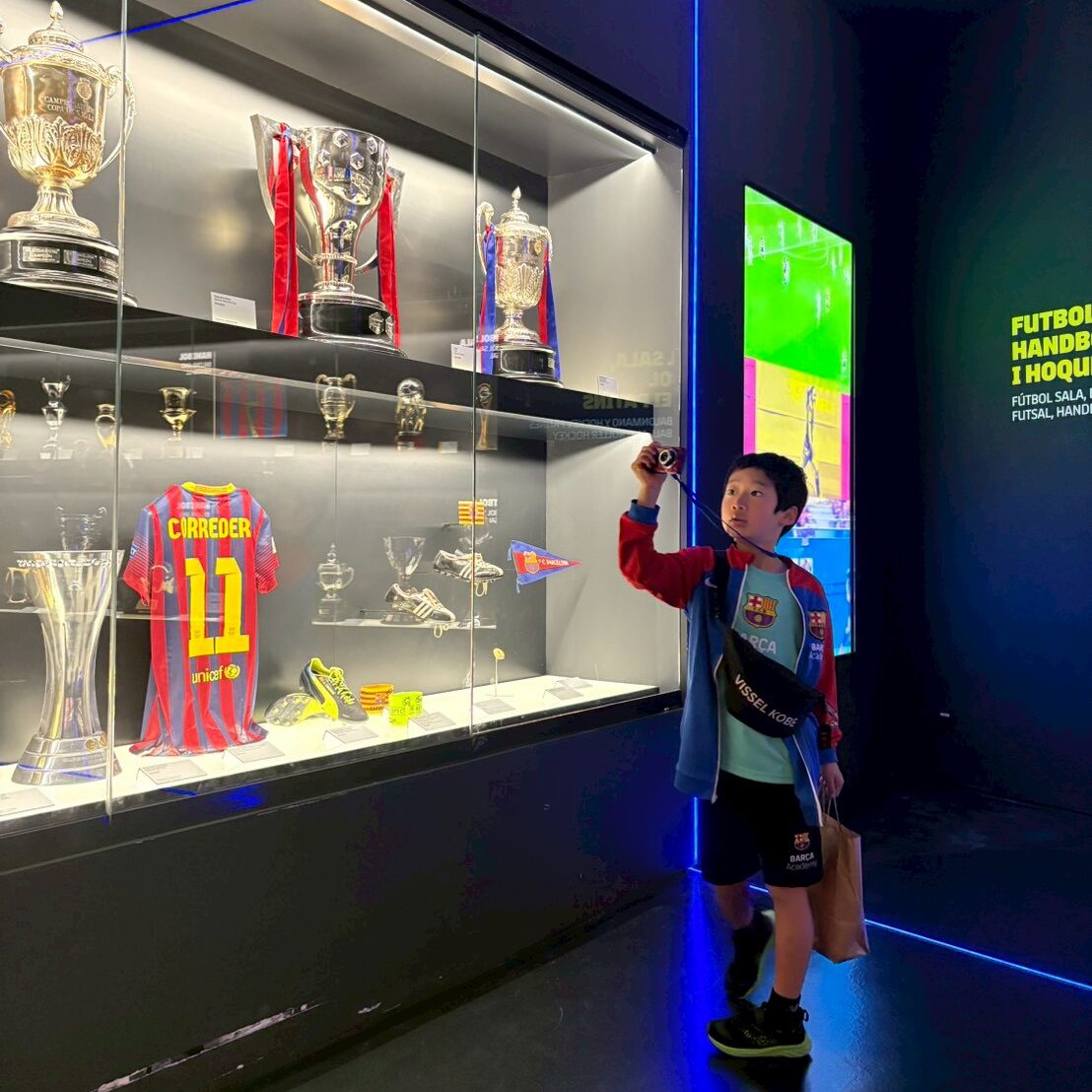 ホームスタジアムであるカンプ・ノウに隣接するバルサミュージアムでは、クラブの歴史やこれまでに獲得したトロフィーなどがたくさん鑑賞でき、記念に写真を撮っていました📸